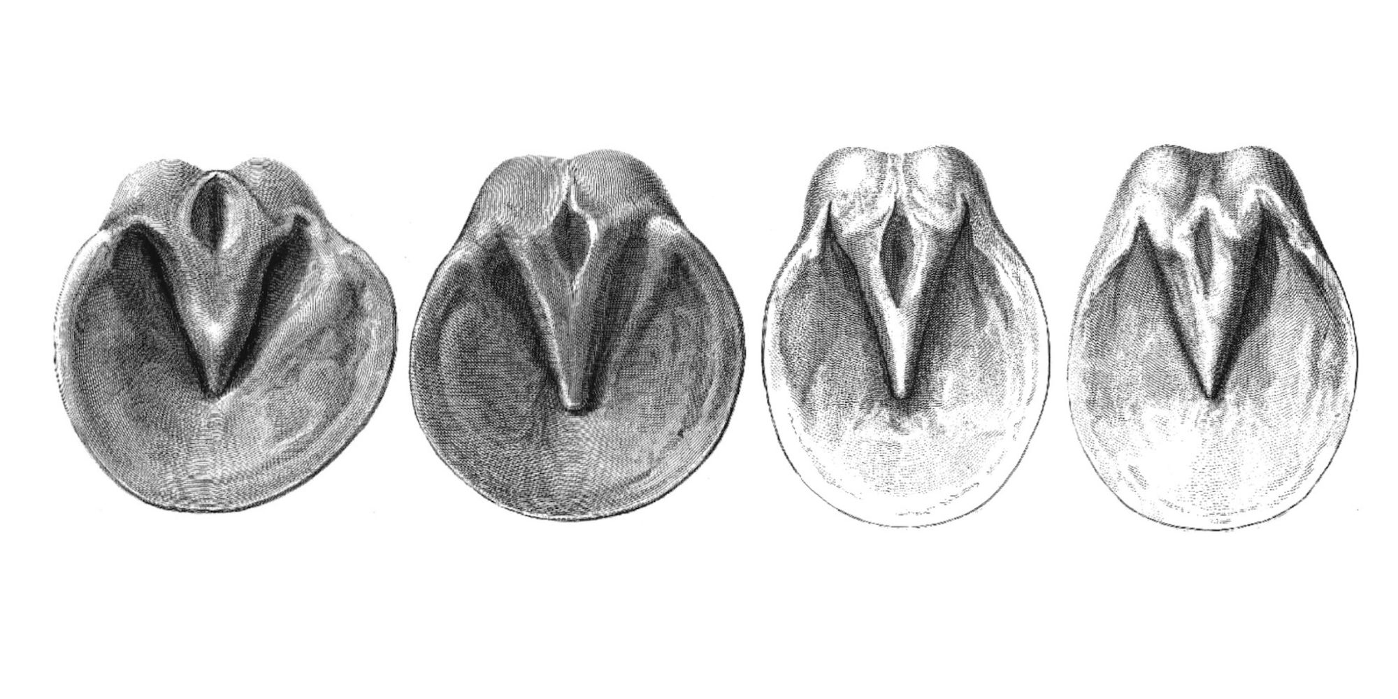 Like any good scientist, and like many of us today likewise strive to do, he set about providing proof of his findings. He researched horses in other countries, seeing them go well barefoot. Once, as an experiment, he rode about 88 miles in three days on a barefoot horse, to prove to his contemporaries that it is not impossible to ride an unshod horse a few miles a day (the popular opinion of the time). His “A Series of Original Experiments…” featured a number of plaster casts of a five year old mare which had never been shod, but was now to be used and shod. He took casts of the same foot before the first shoeing (Fig 1), and then after one year of continuous shoeing (Fig 2), after two years (Fig 3), and after three years (Fig 4). It must be noted that, before the end of this third year of shoeing, the owner of the horse—having become aware of and alarmed by this demonstrated effect of the shoe on his horse’s hooves—had the shoes taken off and the mare turned out to pasture, effectively interrupting the course of the experiment, and accounting for the slightly less contracted state of the foot at the end of year three.
