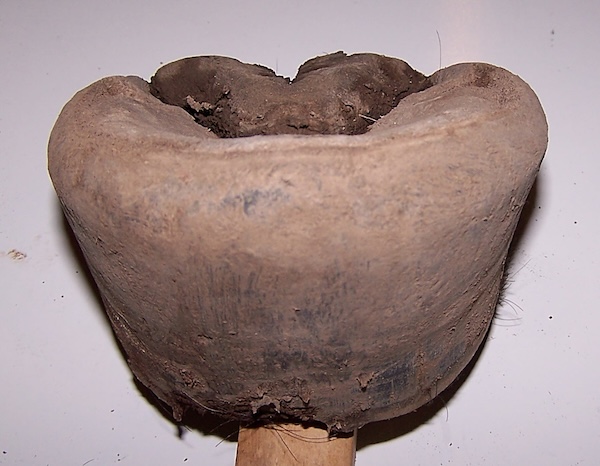 I can’t help mentioning, though, that I usually use Lysol Concentrate mixed to 2 ounces per gallon. I shouldn’t mention it because it is inconsistent with the labeling, but I’ve used it on a thousand horses and have never seen or heard of a negative effect. (If you use 2.1 ounces per gallon you’re on your own, but I’ll stand behind the 2 ounces per gallon as being much safer than most commercial thrush remedies! And more effective. Not saying much, actually.) In truth, I think the reason it is so effective is that it’s cheap enough that people will actually repeat it over and over, rather than the “one or two chances” they’ll typically give a more expensive product. It makes a soapy water that kills fungus, yeast and bacteria without harming living tissue or drying out the skin or hooves. Elegantly simple, and it works. I typically have my customers use soaking boots to soak the hooves 3 times a week for 30 minutes. I use it for wall cracks, white line disease, and thrush.