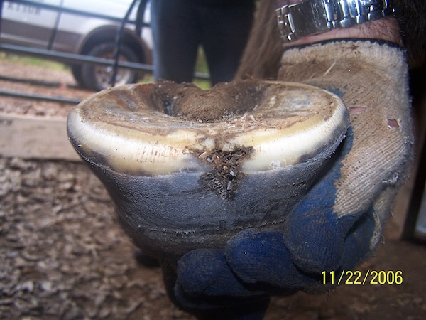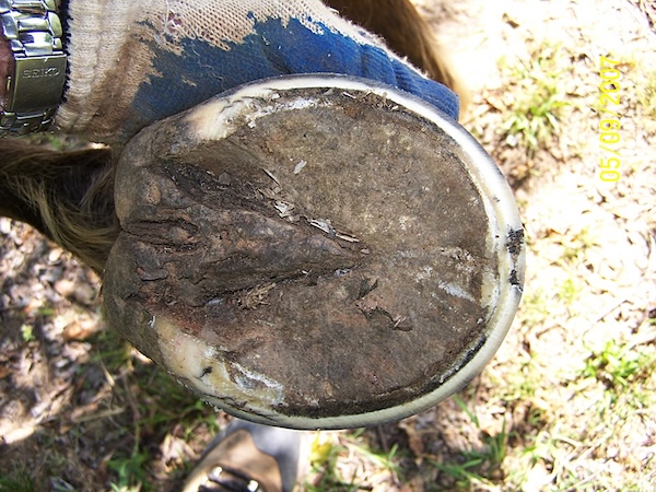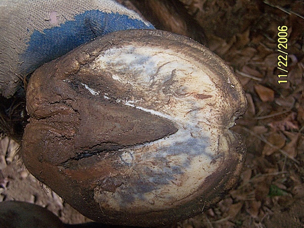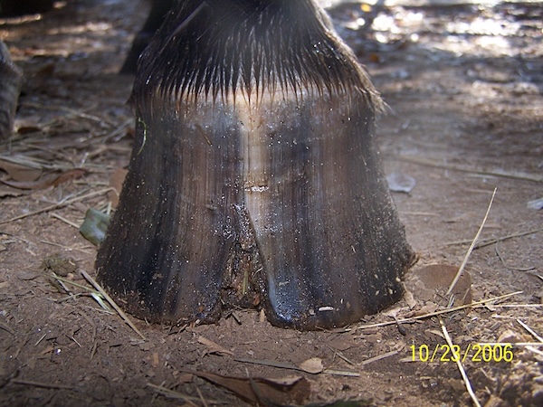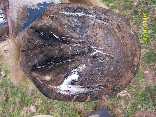 Also, there is an important dietary consideration here, as well. If a horse is missing something, he’ll provide it to the more vital organs first, the skin gets the leftovers. So any dietary problem will make a horse’s hoof horn weaker and more susceptible to this kind of attack.